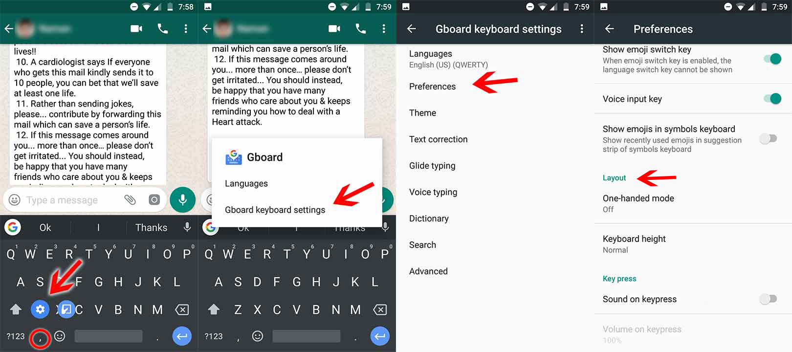 - Now let’s jump to the preferences option, here you can adjust the Keyboard height and can also turn on the One-handed mode. It will further change the layout of the app.