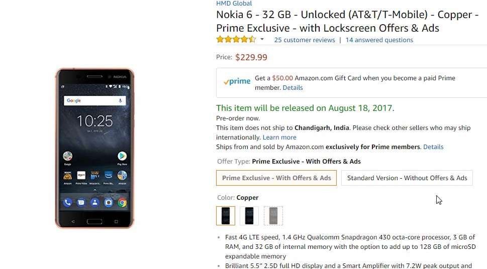 Nokia 6 now available to buy in the US for $179.99 on Amazon