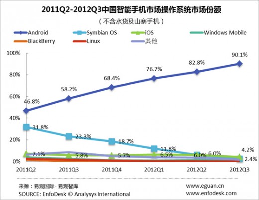 Android Share In China Passes 90% Smartphone Market