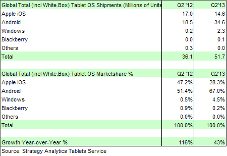 Tablet Market: 67% Tablets Runs Android. iPad 28% And Windows less than 5%