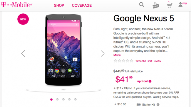 T-Mobile Nexus 5 Now Available For $449