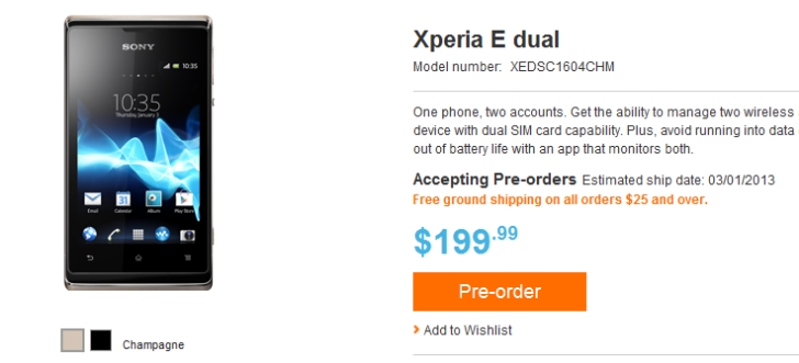 Sony Xperia E Dual Up For Pre Order To Ship From March 1